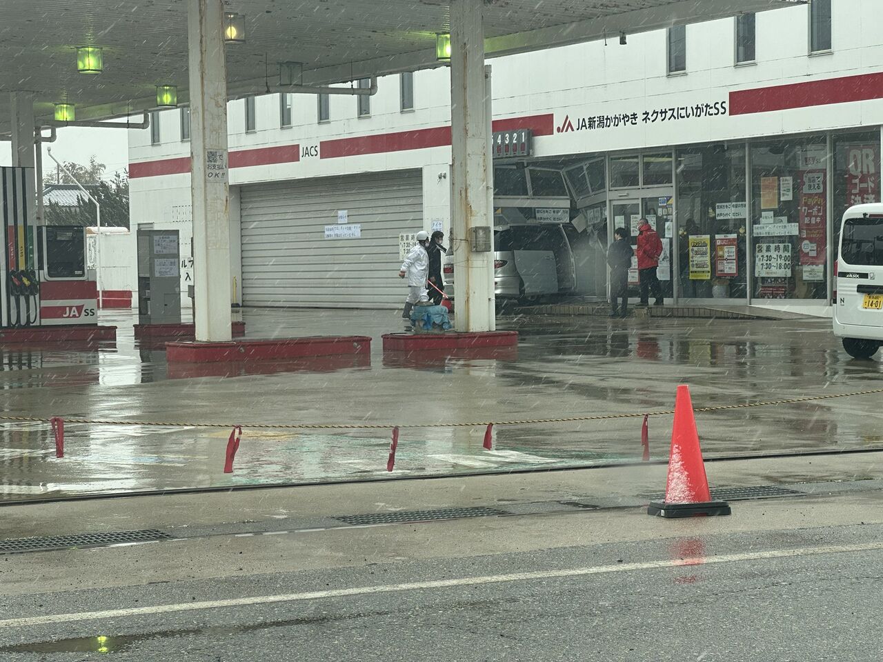 【現場の状況】#交通情報 #国道116号 新潟県新潟市西区金巻新田付近 ガソリンスタンドに乗用車突っ込む事故3月3日 #新潟