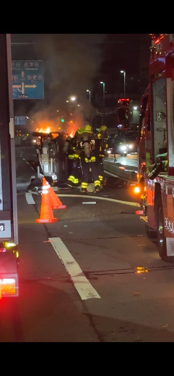 『246で事で車燃えてた。周りに人影なかったけど大丈夫かな..』