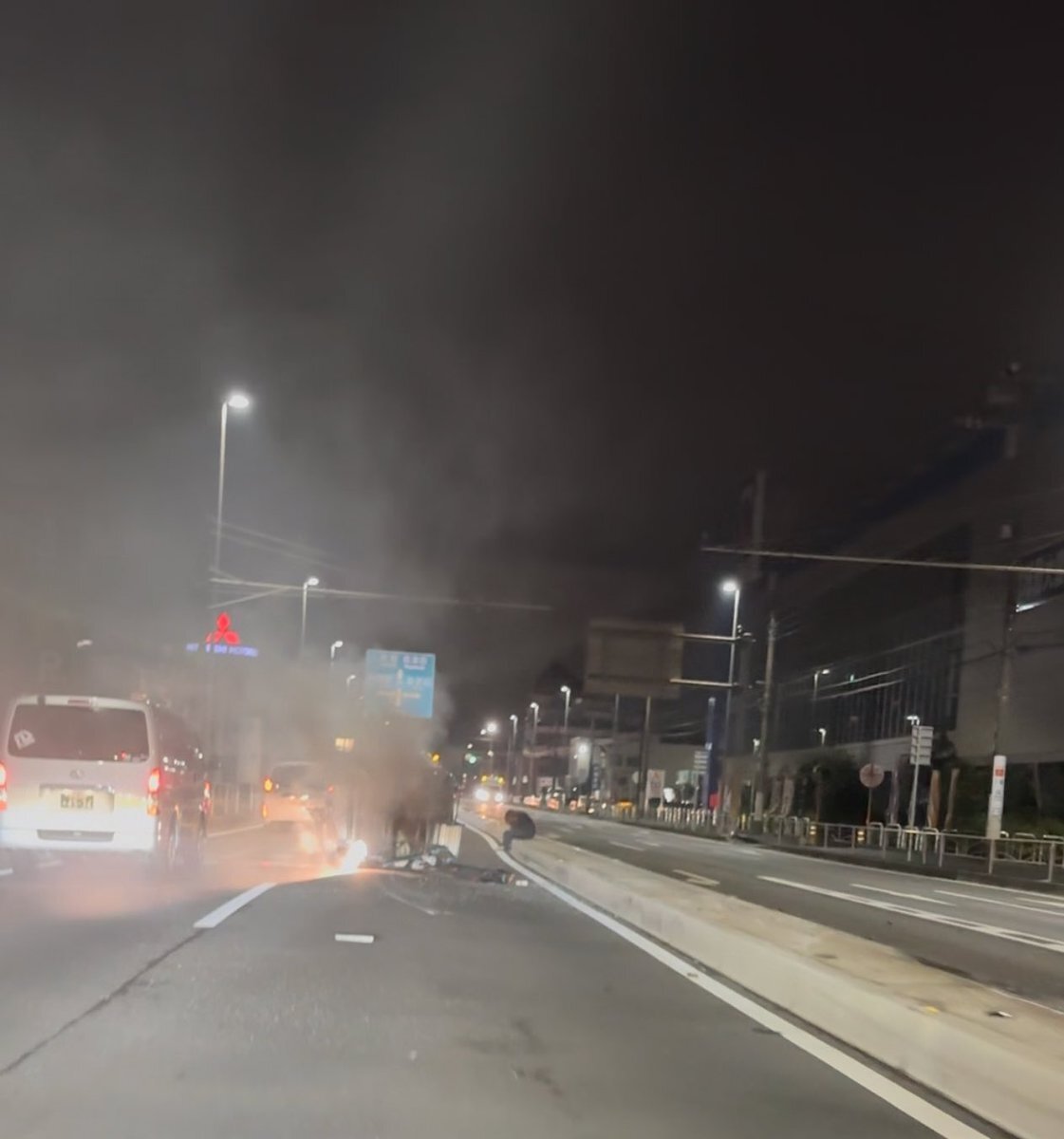 246で事で車燃えてた。周りに人影なかったけど大丈夫かな.. pic.twitter.com/l4dhUcoJoF