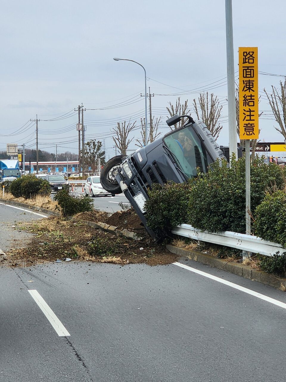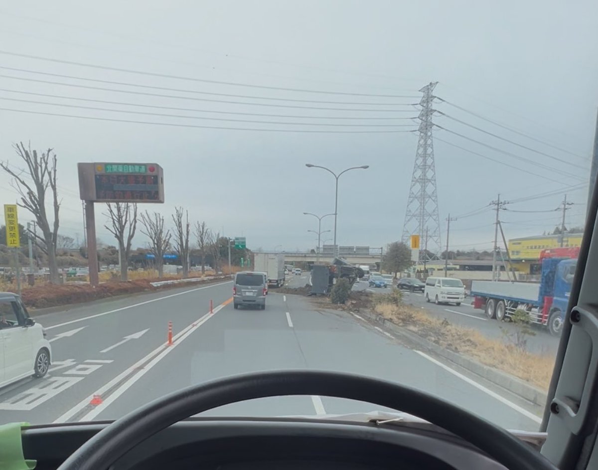 【現場の様子】#交通情報 #国道4号 新4号国道バイパス 上り 栃木県宇都宮市上三川インター付近 積荷散乱中央分離帯トラック横転事故で一時通行止め3月4日 #渋滞 #栃木 #宇都宮 #新4