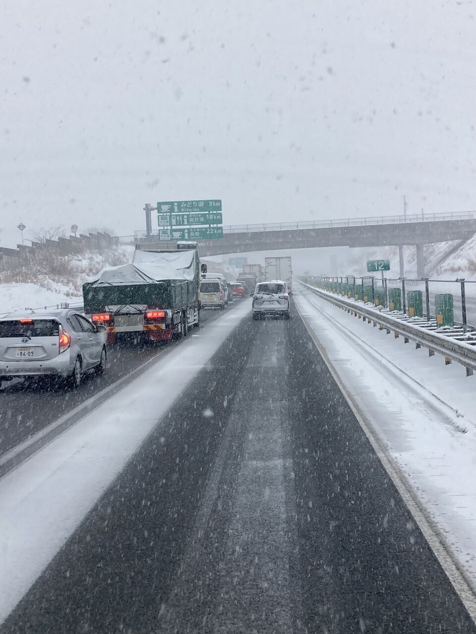 この事故に加え降雪もあり運転注意