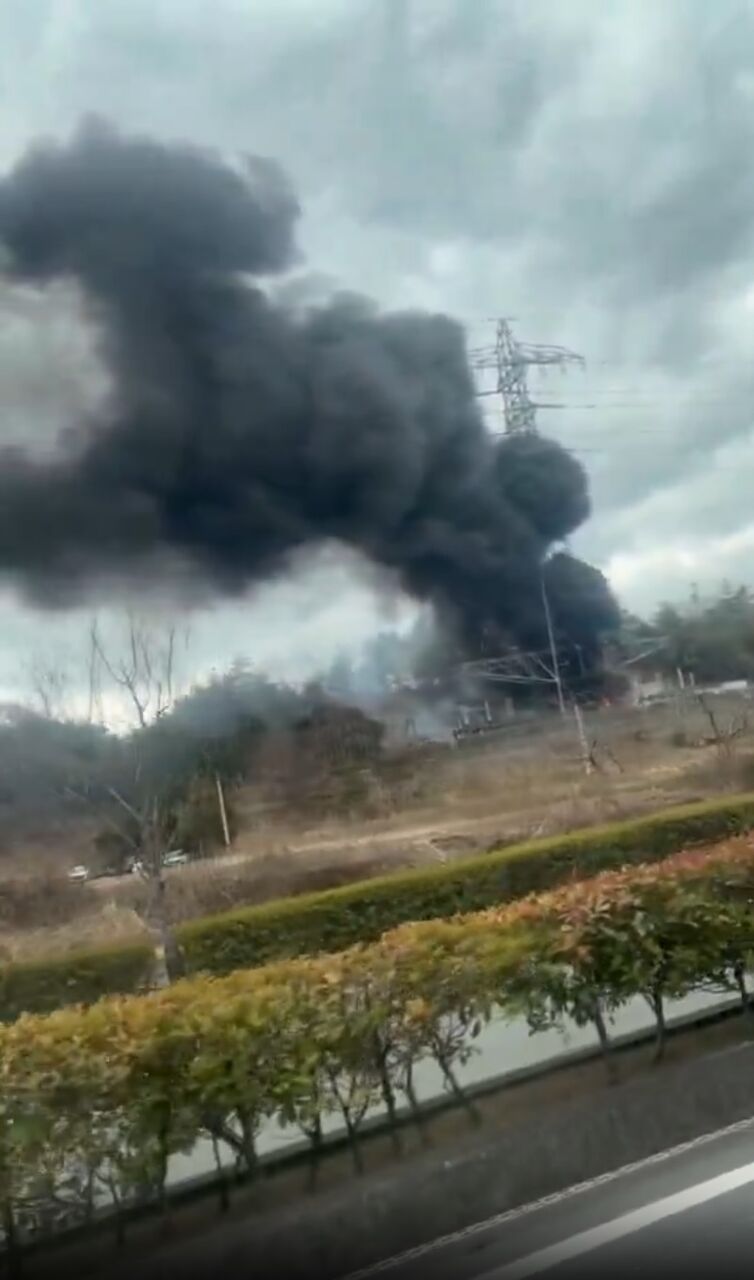 【火事情報】岡山県岡山市北区富吉 県道72号線沿い 富吉変電所付近建物から黒煙あがる火災 周辺では爆発音や一部停電も3月7日 #岡山 #火災 #停電