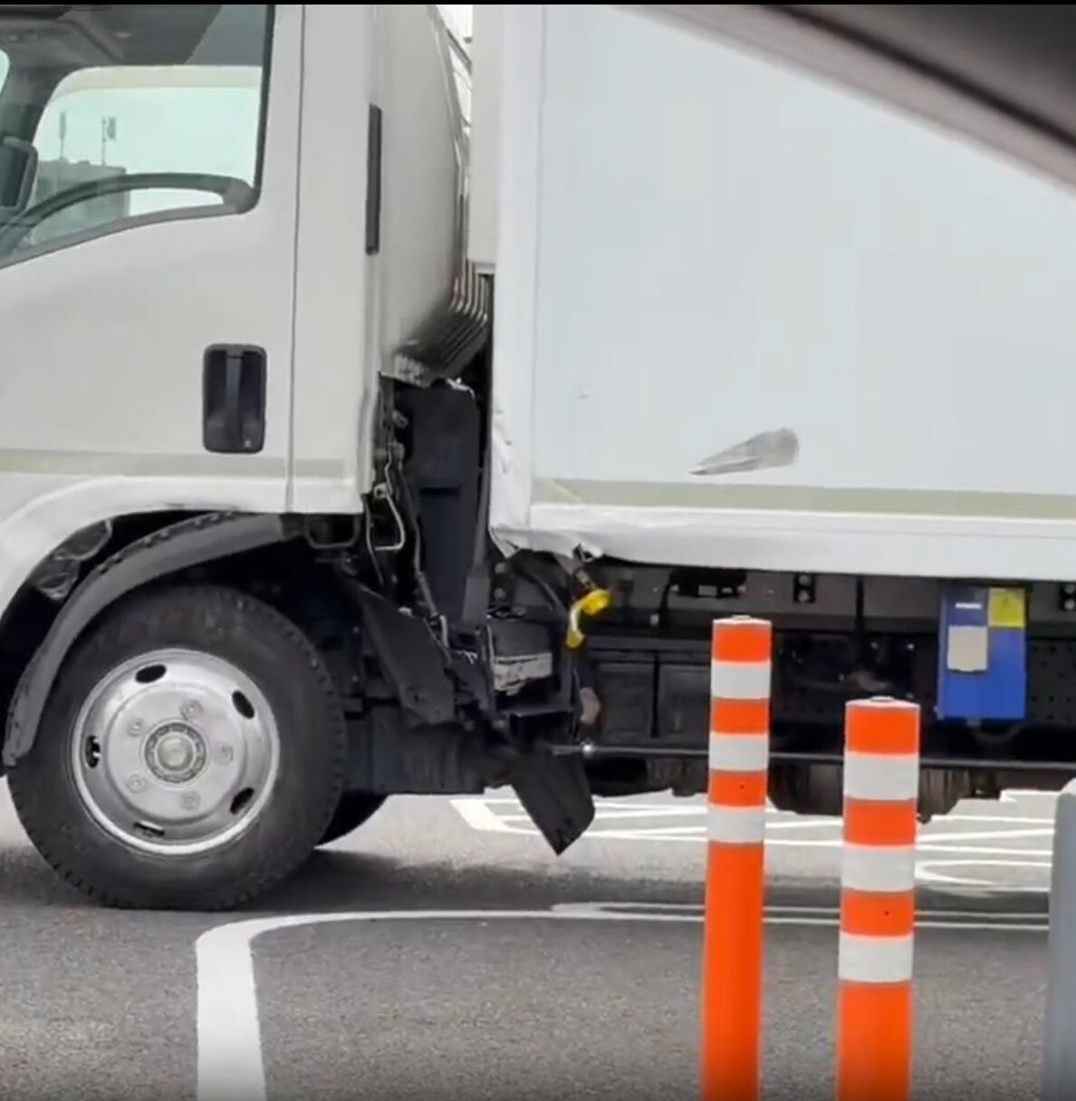 『おそらく右車線走行中のトラックに被せられ逃げ場が無くそのまま電柱に激突したと思われる🥺』