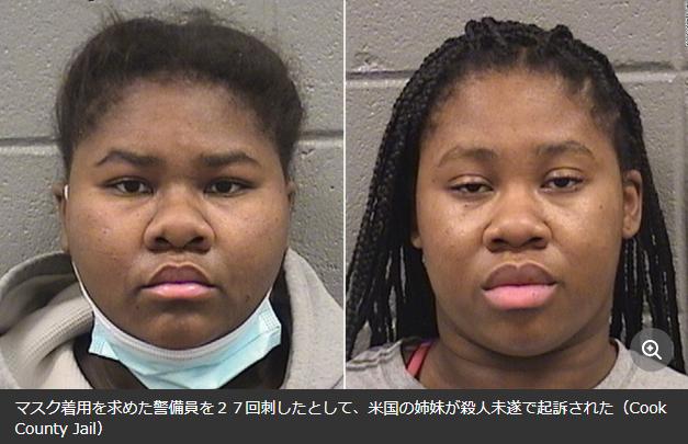 米イリノイ州の警察は29日までに、第1級殺人未遂の容疑で21歳と18歳の姉妹を起訴したことを明らかにした。姉妹は小売店を訪れた際、マスクの着用を求めた警備員と口論になり、ナイフで警備員を27回にわたり刺したとされる。