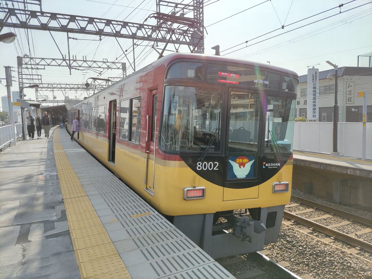 京阪御殿山駅で特急が止まってる。