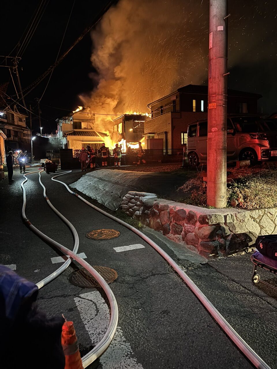 仕事帰りに彼女迎えに駅に行って帰り道に家すげー燃えてた💦