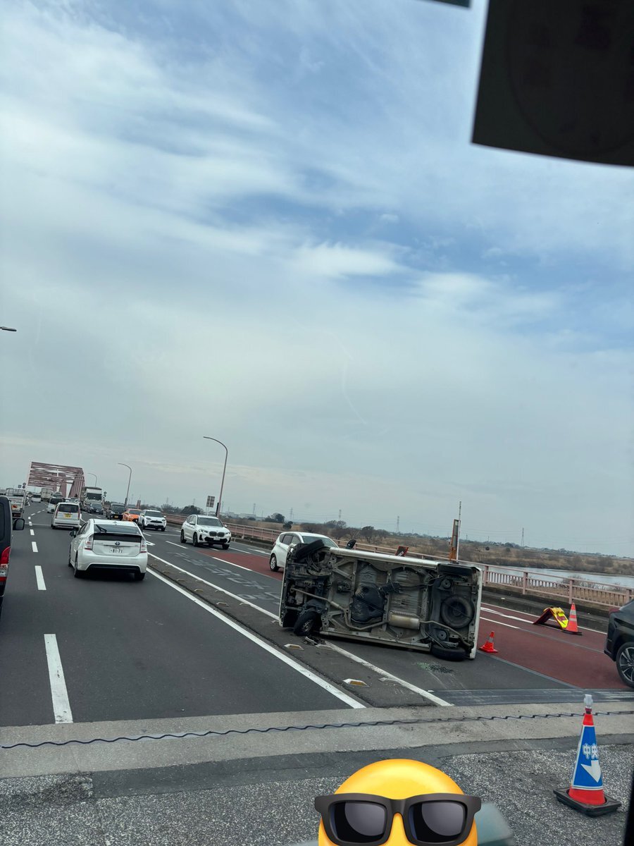 【現場の様子】#交通情報 #国道407号 上り 群馬県太田市刀水橋北詰付近 車線塞ぐ軽バン横転事故で規制渋滞3月11日 #渋滞 #群馬 #埼玉