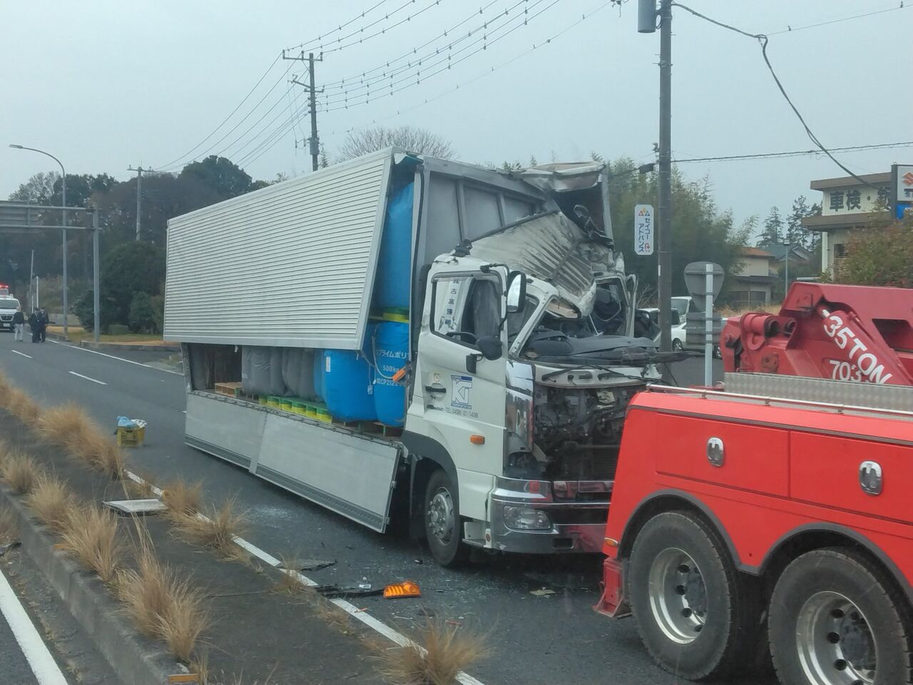 122号下り関山北の交差点先でトラック事故。