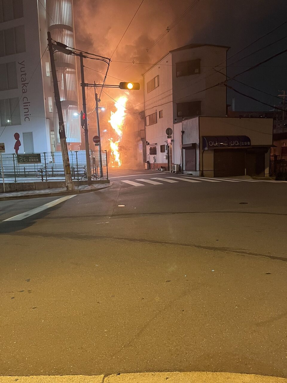 『仕事行く途中、京橋の信号渡った辺りでやたら空がモヤってんなって思ったら火事やった』