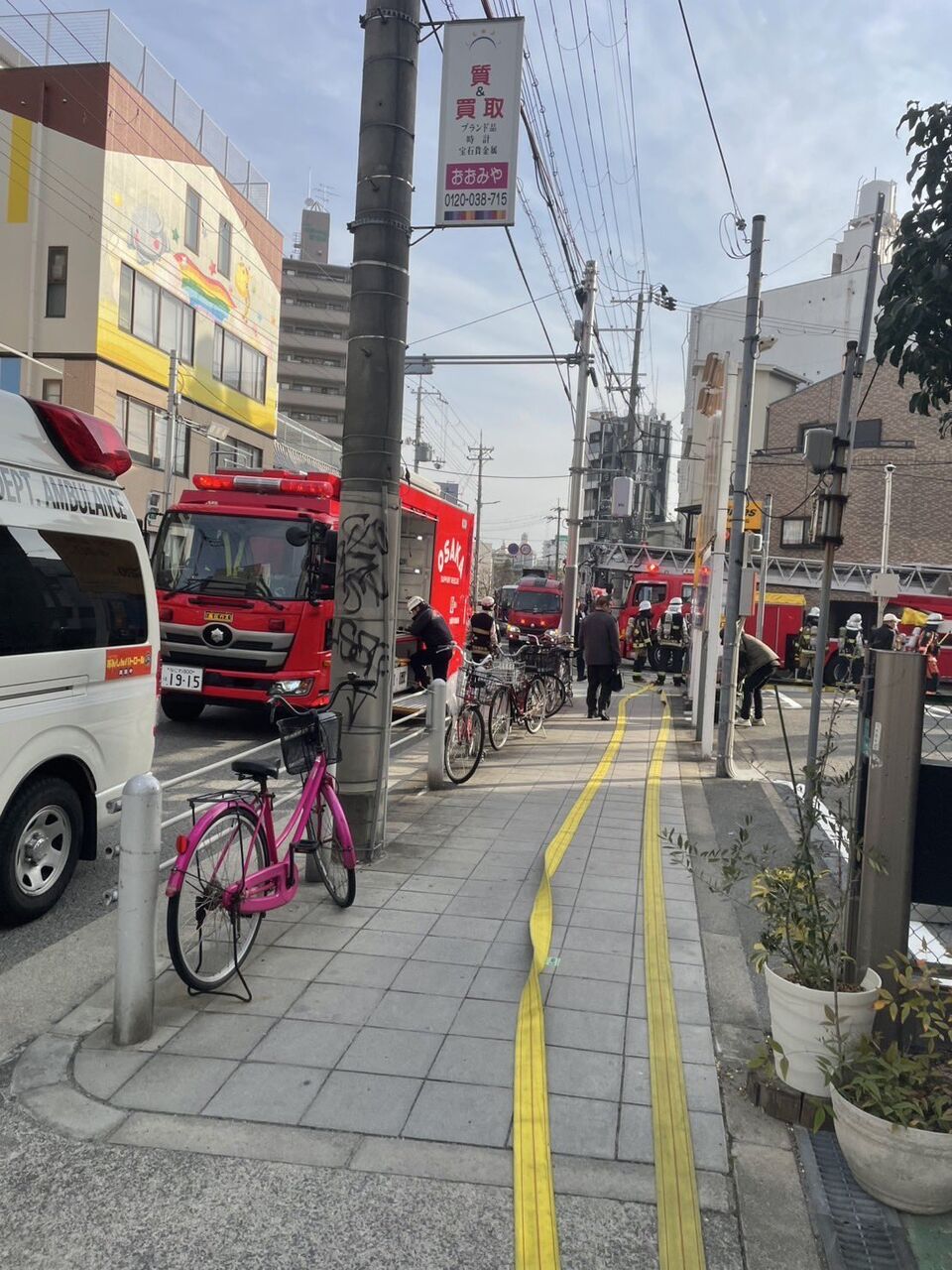 2025年3月14日 朝7時ごろ 大阪府大阪市淀川区新北野3丁目付近に消防車が出動している目撃情報が寄せられた。