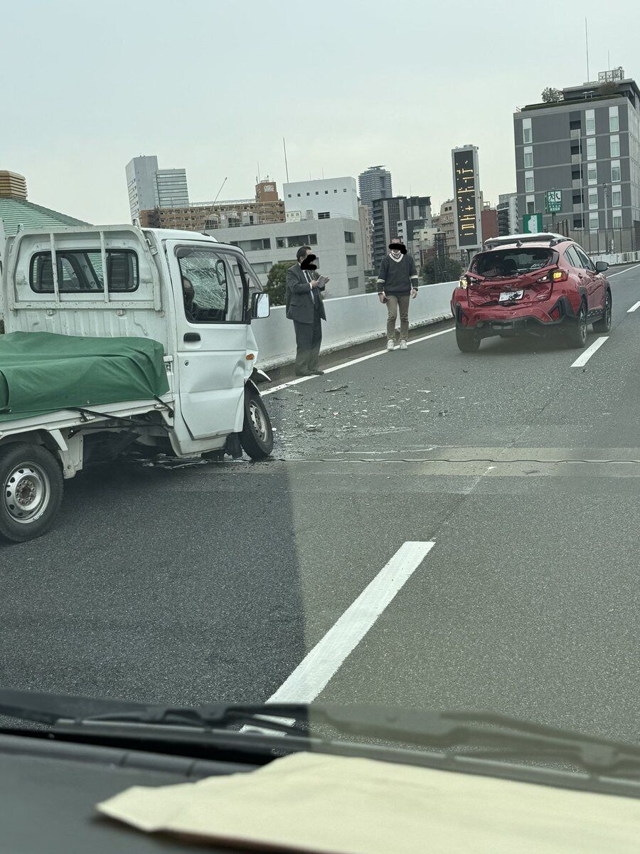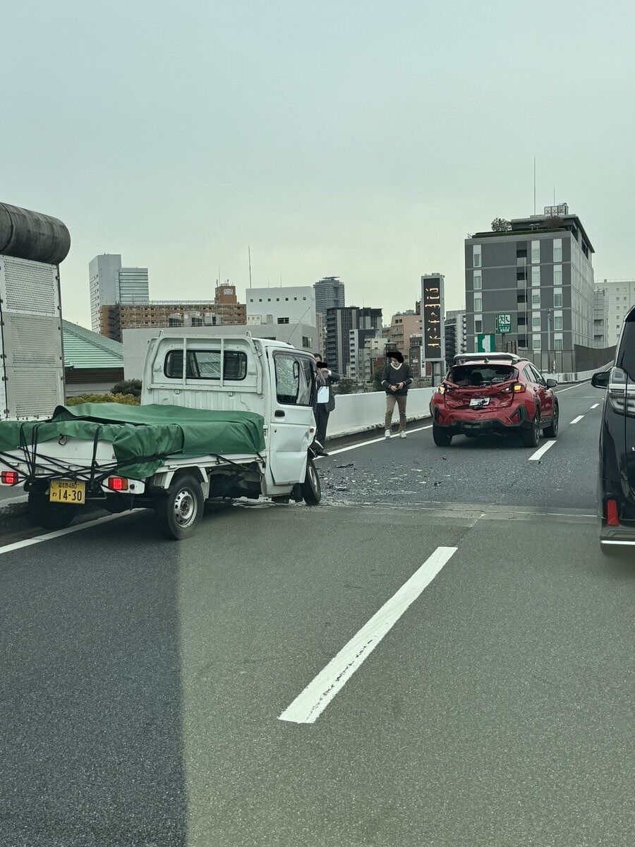 首都高6号向島線(上り)…軽トラが追突したもよう💫 pic.twitter.com/tzWyJnNblU