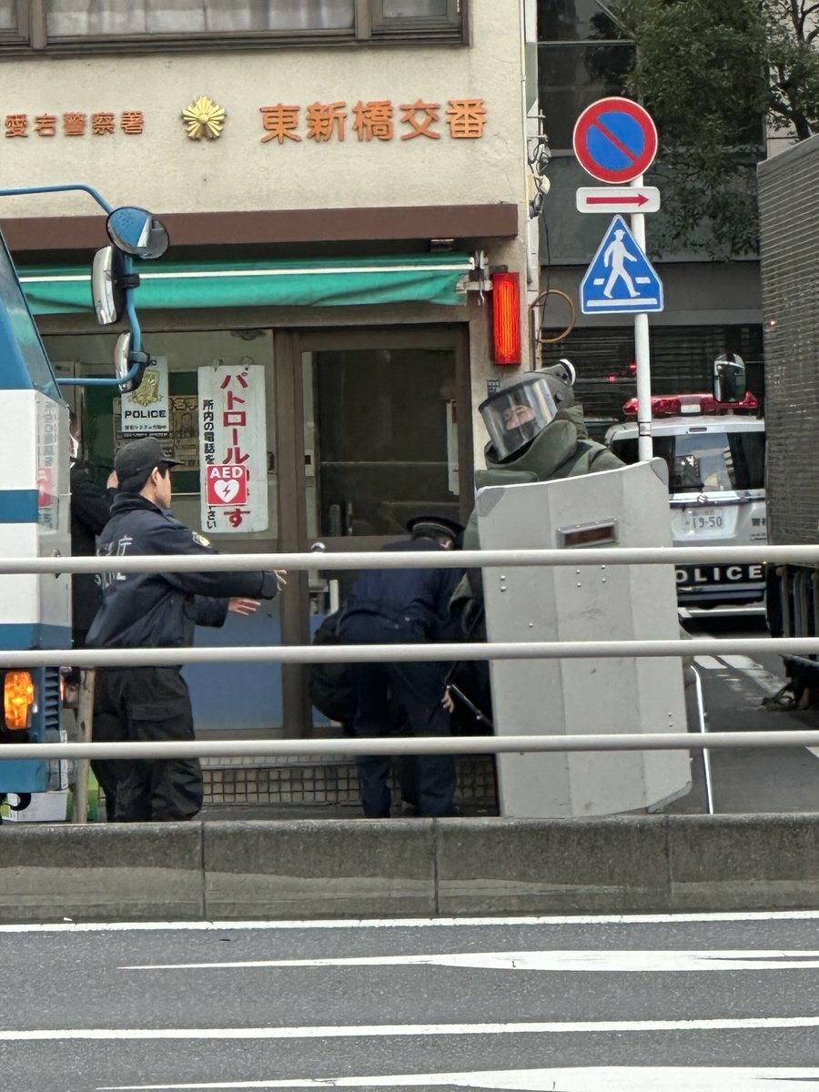 『朝から新橋に爆発物処理班いるんだが? 交番前のカバンを検査中』
