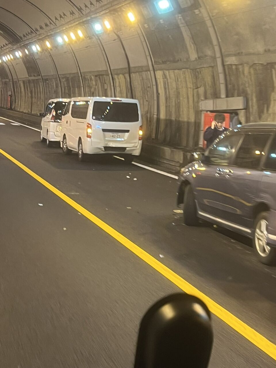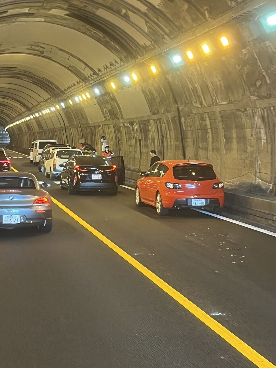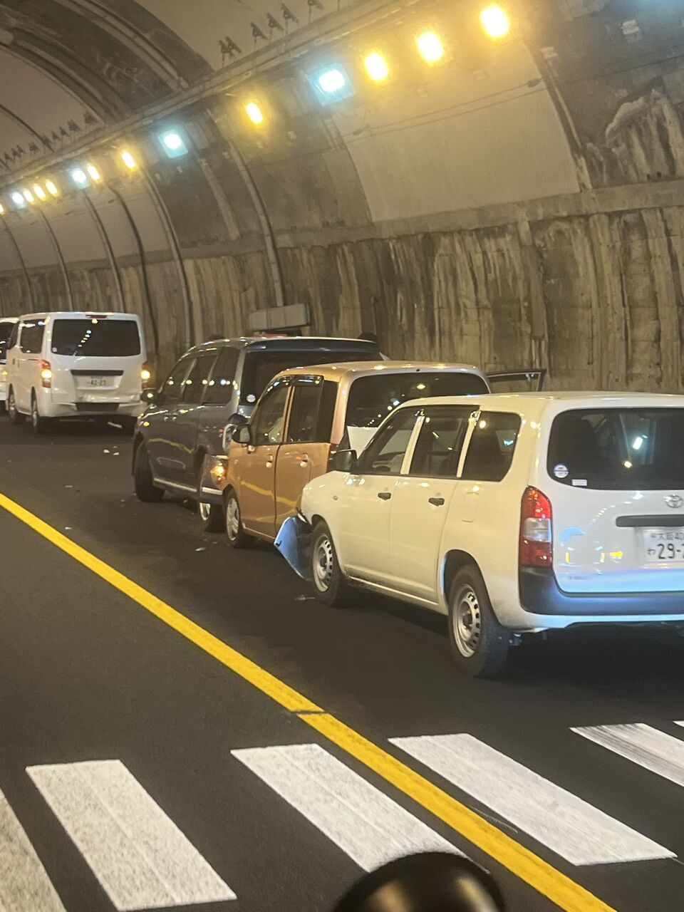 鮎沢付近トンネル内で4〜5台玉突き事故でした↗️💦#PA鮎沢 #東名高速