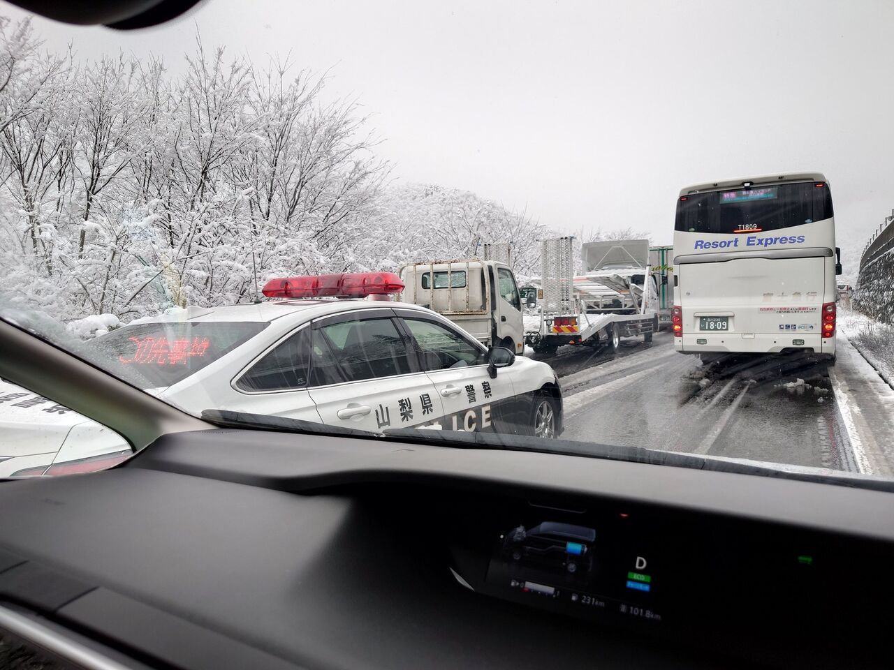 なんでこんな日に山梨で積みなんだよって思ってたらこの先の事故で通行止区間で生き埋めになった