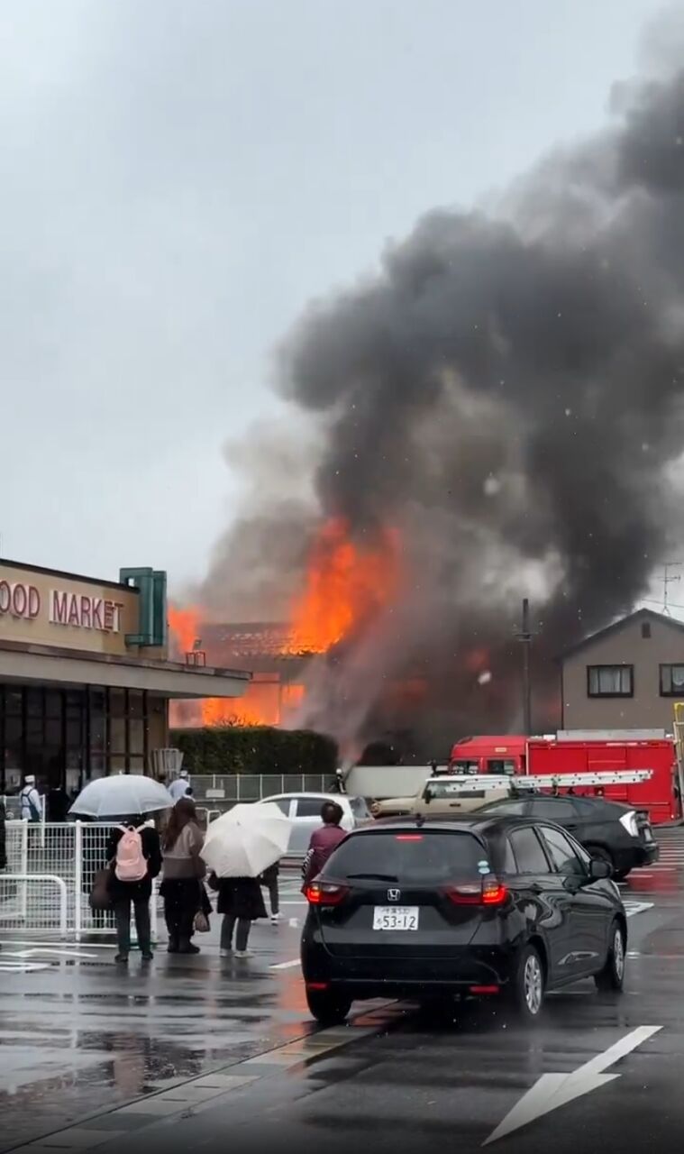 近くのスーパーのすぐ一軒家が火事が発生してる