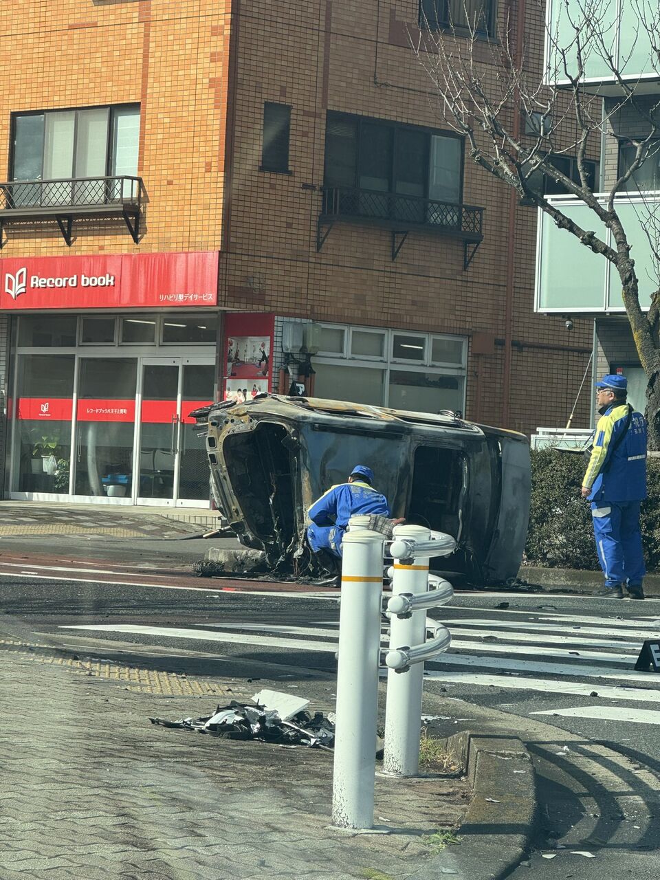 『なんかすげー音が聞こえたと思ったら交差点で車が事故って爆発全焼してた』