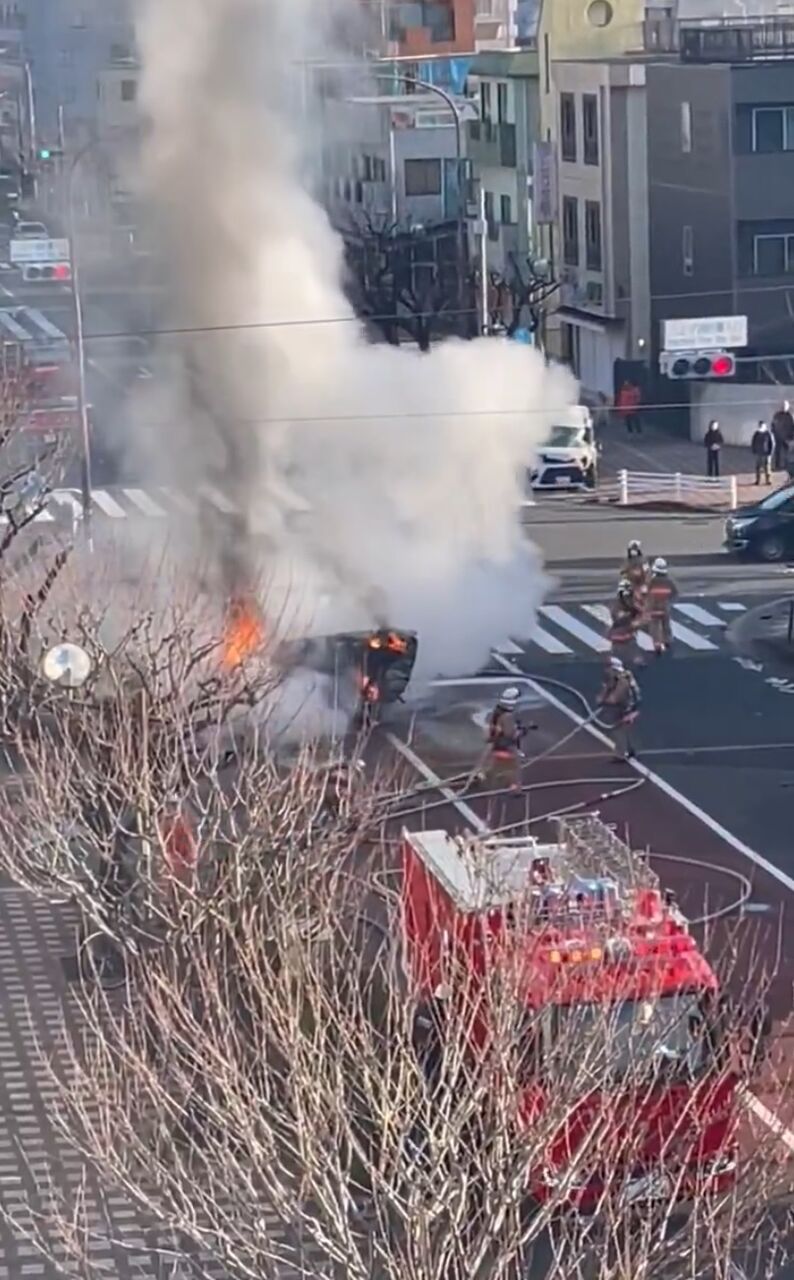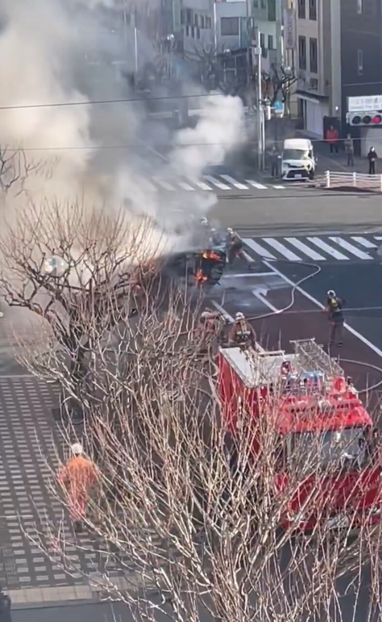 交差点奥で爆発炎上してるんじゃが pic.twitter.com/niUjF7qZnD