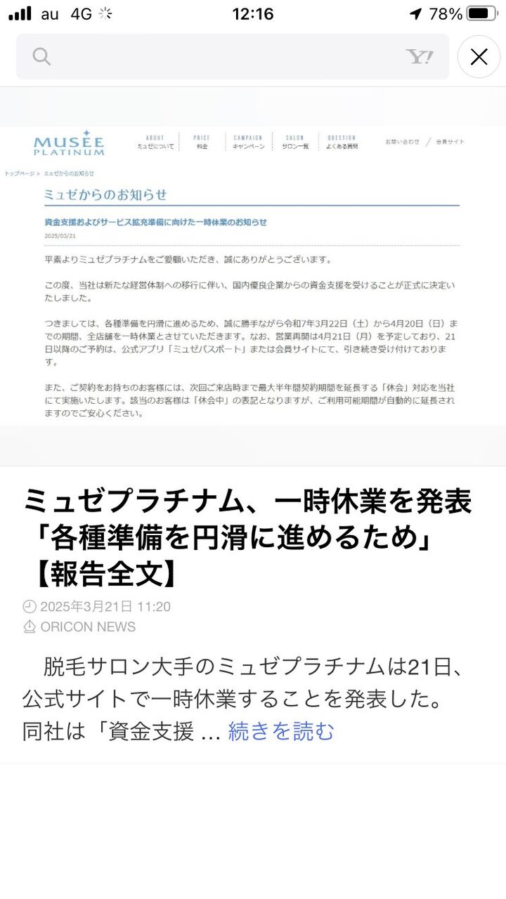 案の定!!!!近所のミュゼが突如、今月末で閉店しやがる!!!!!!!!#ミュゼ #解約 #閉店 https://t.co/flcjhZsPp5 pic.twitter.com/ogZ0XrEkYE