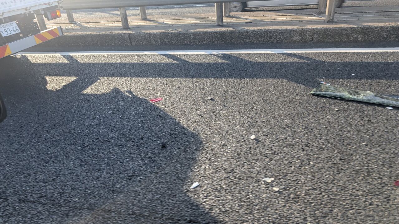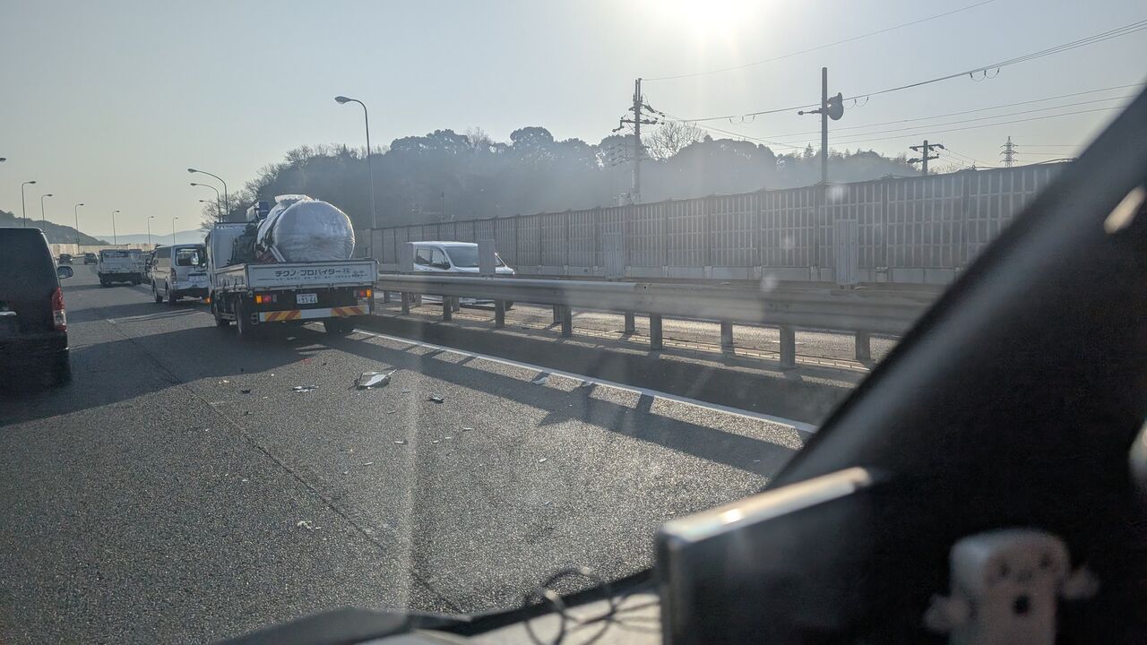 【現場の様子】#交通情報 #国道2号 加古川バイパス 東行き 高砂北ランプ付近 破片散乱車両3台絡む事故で規制渋滞3月22日 #渋滞 #兵庫県 #加古川