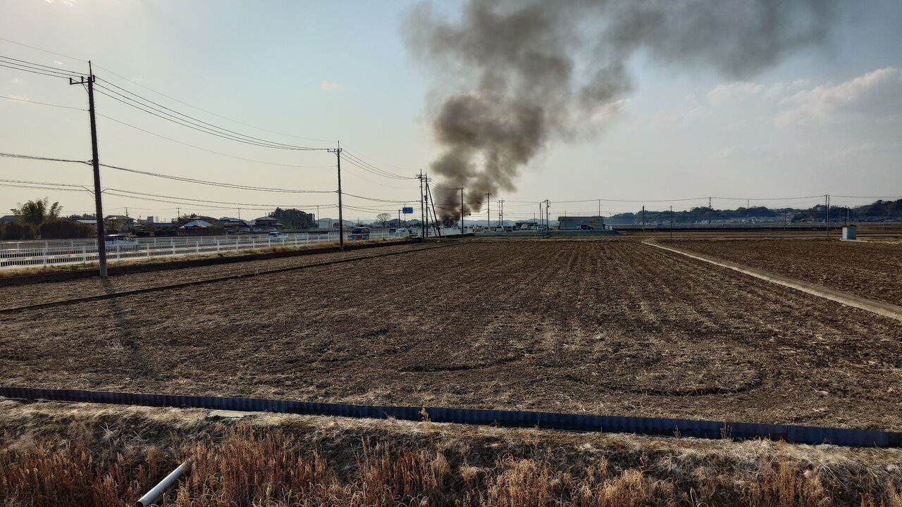 【火事情報】茨城県常陸太田市上河合町付近 建物から黒煙あがる火災 #水郡線 上菅谷〜常陸太田駅の沿線会で運転見合わせ遅延3月22日 #茨城 #常陸太田市 #火災