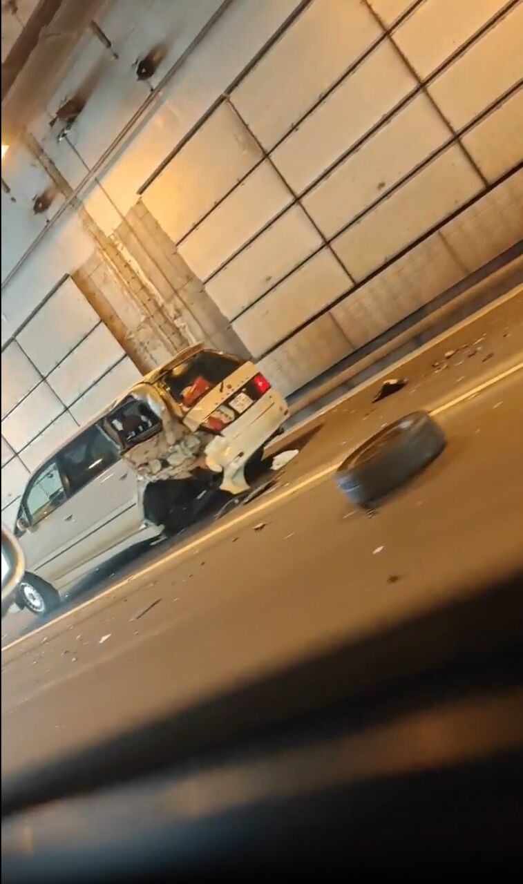 『空港北トンネル内で事故渋滞😅