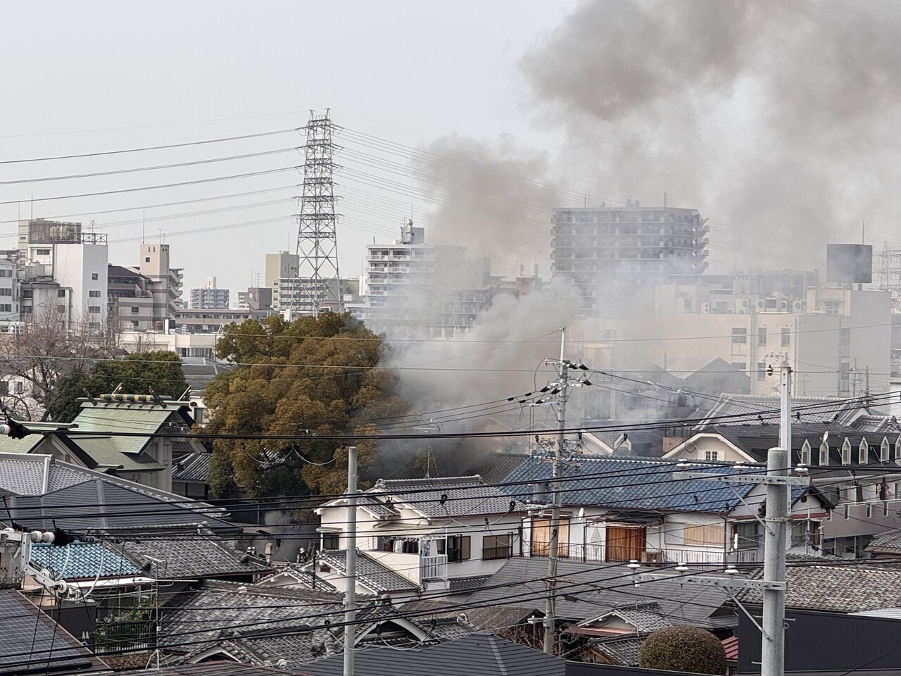 🚒幾台もの消防車のサイレンが聞こえるから外へ出てみたら、真っ黒な煙が上がってて驚いた。