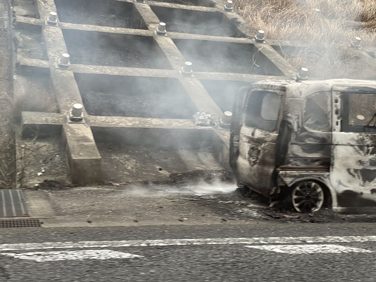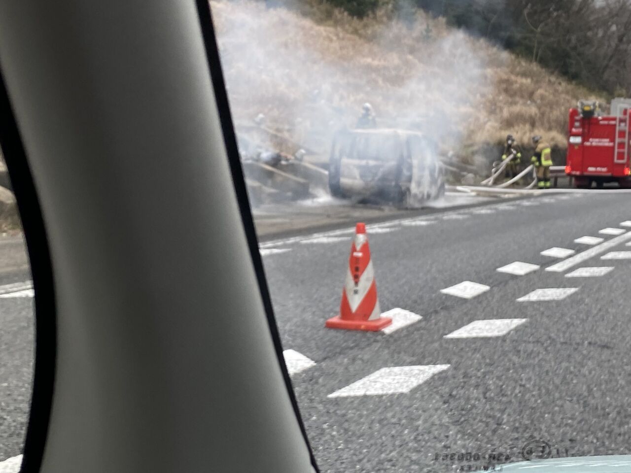 西名阪国道、板屋手前付近で車が炎上してたみたい🥲 pic.twitter.com/YpU1gF8Vft