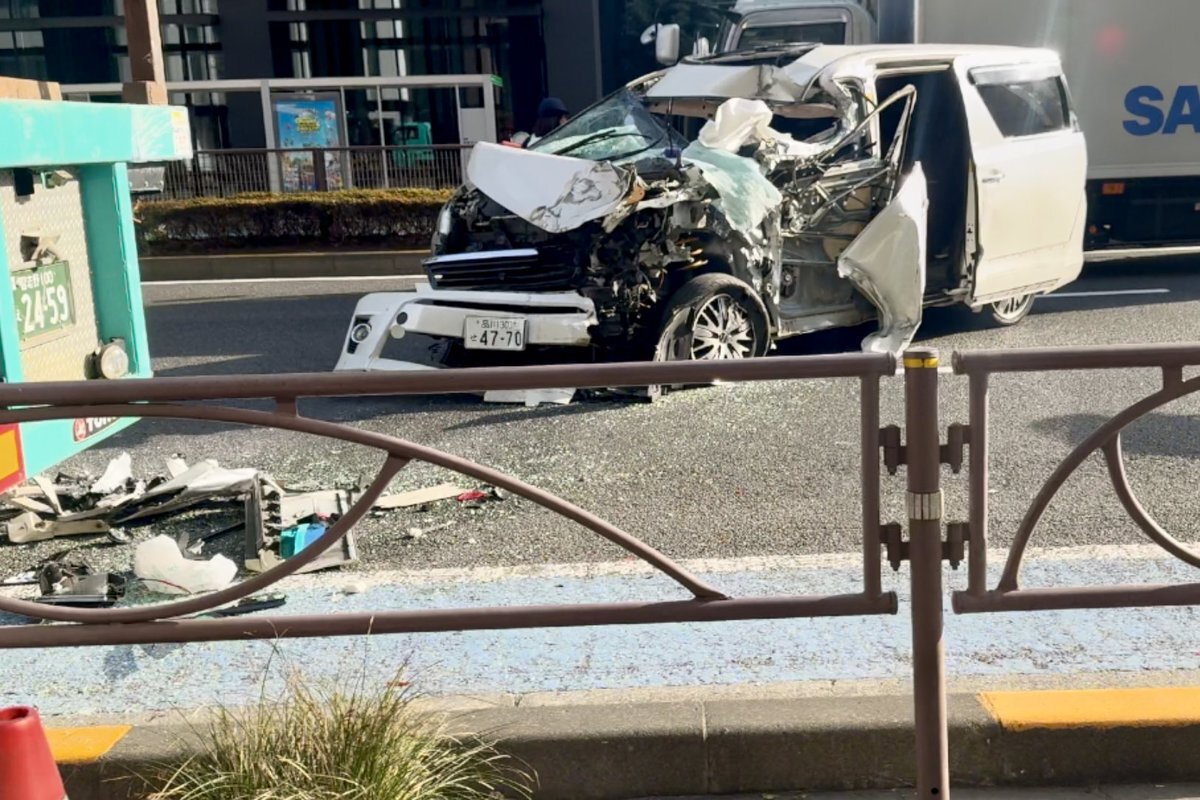 『四ツ谷駅過ぎて麹町6丁目の交差点の先でミニバン大破してた』