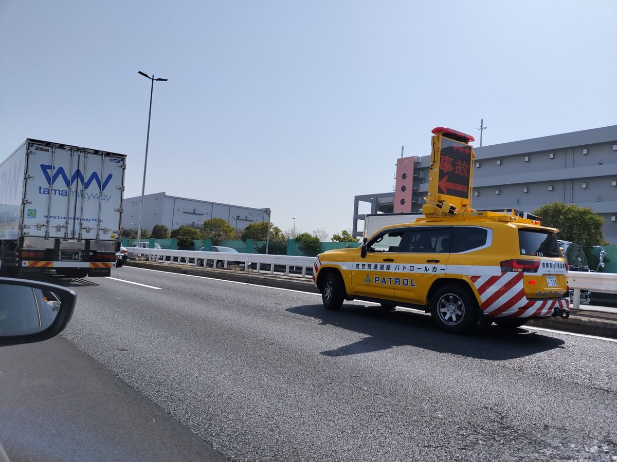 湾岸線東行きの東扇島辺りで大型が4tに突っ込んでるっぽい?渋滞してる
