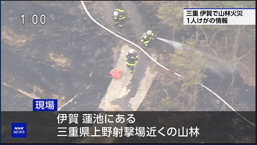 現場は伊賀市蓮池にある三重県上野射撃場近くの山林で、消防が消火活動を進めています。
