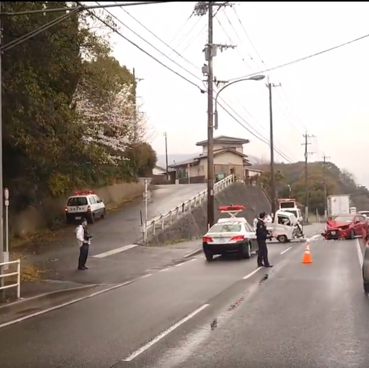 事故車が撤去されるまで、通行される方はお気をつけください💦 pic.twitter.com/5JQu1E9Drt