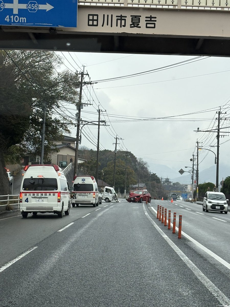 2025年3月28日 午前10時ごろ 福岡県田川市夏吉付近で事故が発生している目撃情報が寄せられた。