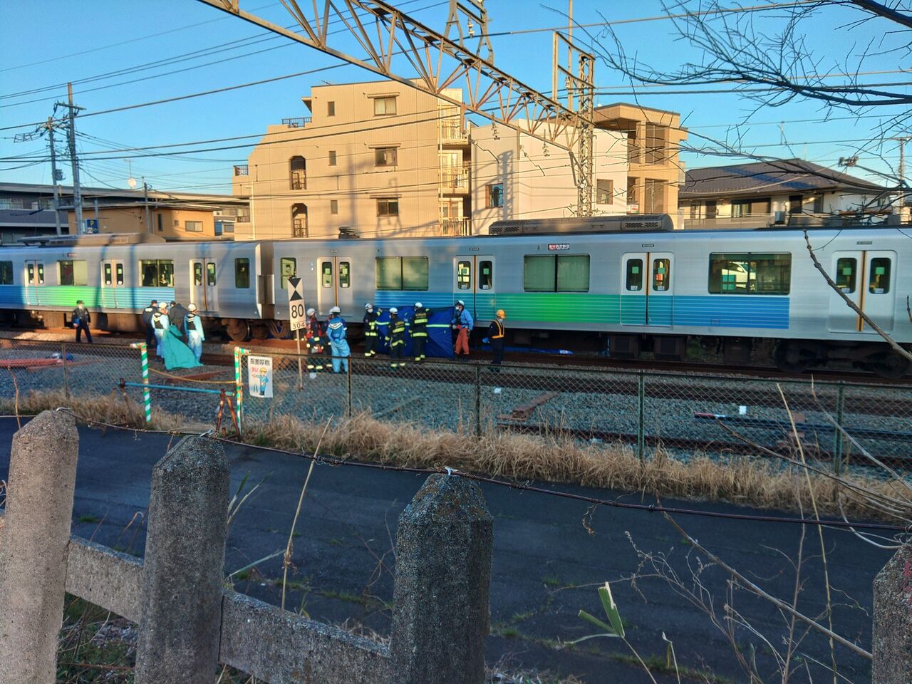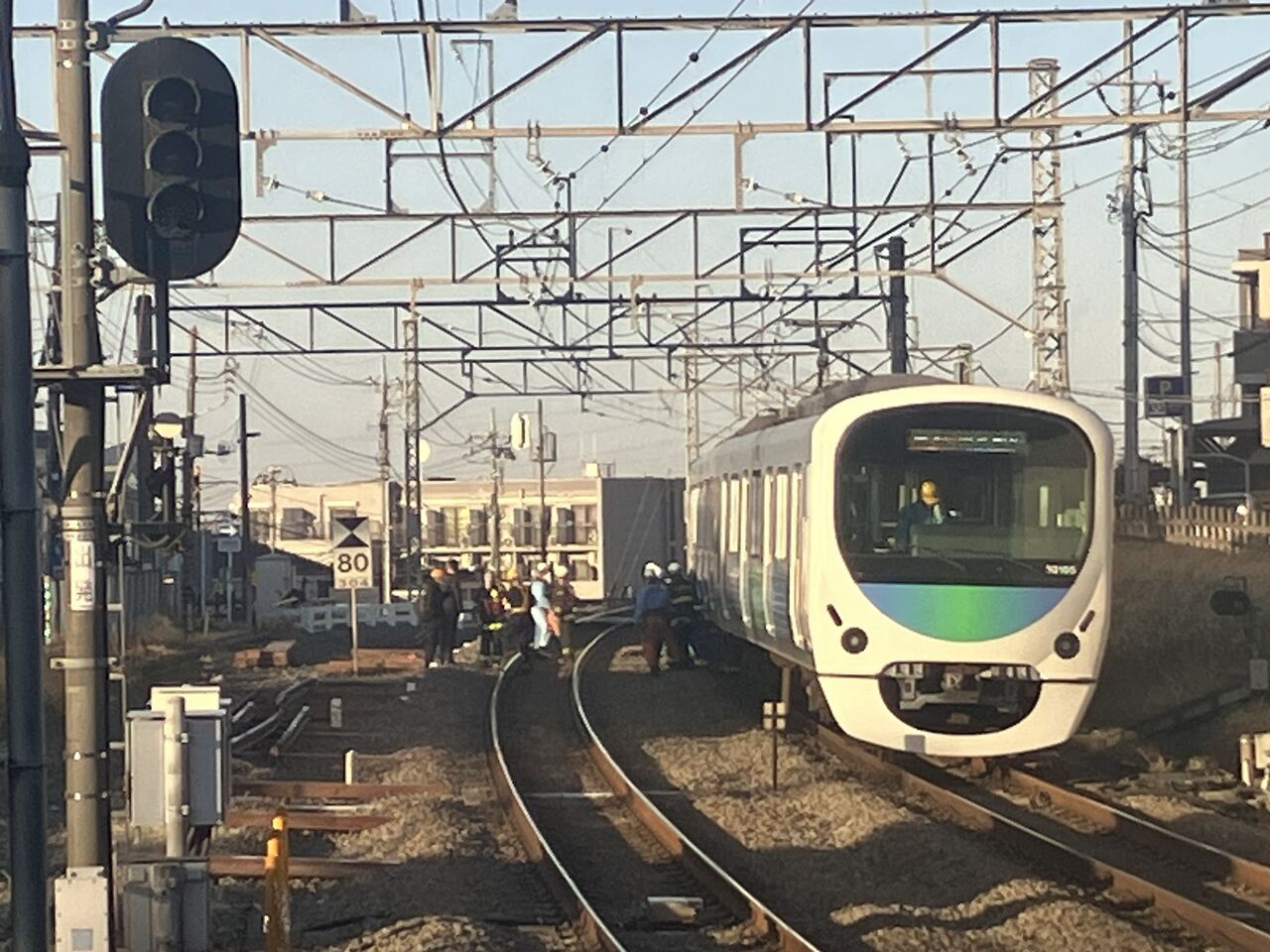 【現場の状況】『作業員が車両確認してる』#西武新宿線 狭山市~新狭山駅付近で人身事故 #西武拝島線 など遅延3月18日 #西武 #新宿線 #埼玉 #狭山