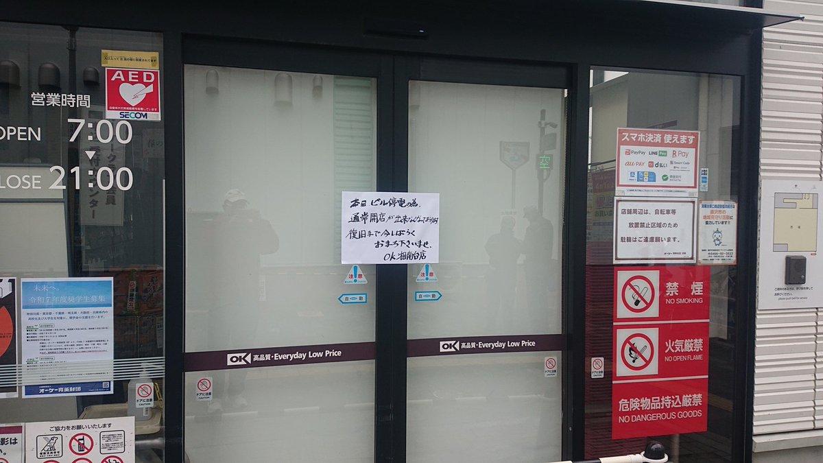 駅ビルのスーパーOKストアが一時停電でオープン遅延という目撃情報も