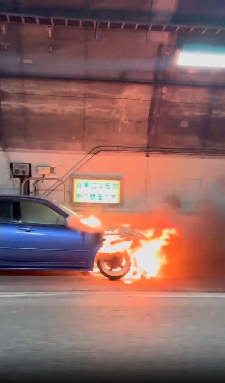【現場の状況】#交通情報 #山陽道 本郷IC〜河内IC付近 竹原トンネルで乗用車燃える車両火災事故で通行止め渋滞4月1日 #広島 #通行止 #火災
