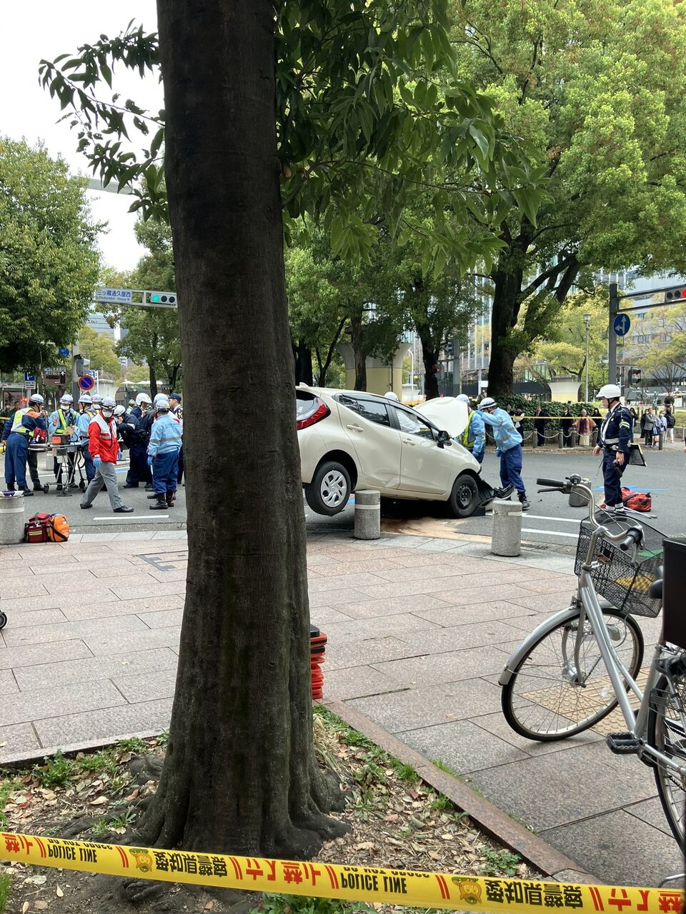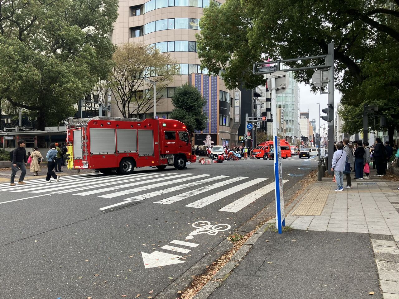 『久屋大通で事故あったみたいで、警察官もパトカーも救急車も来てて大変なことになってる。』