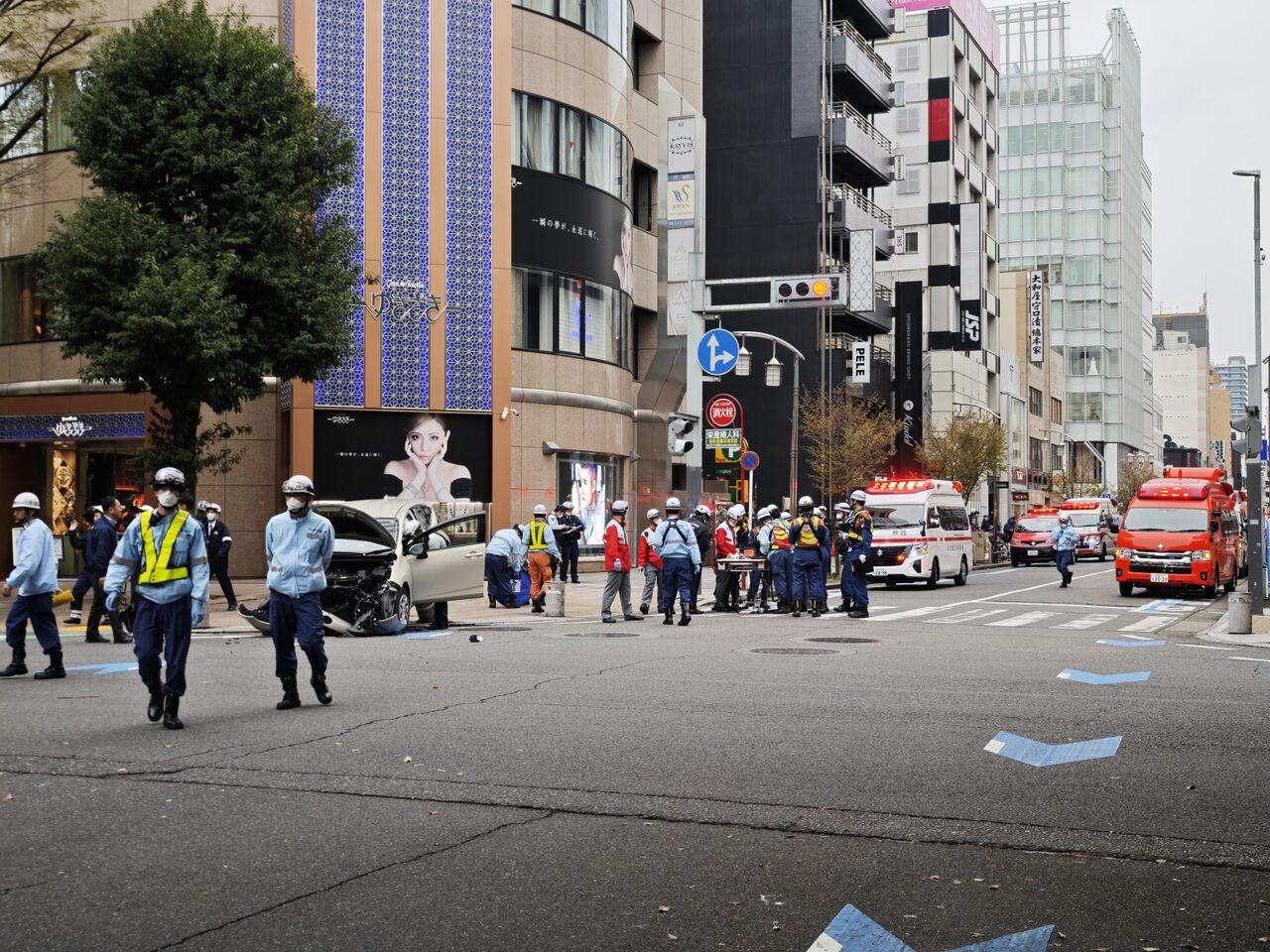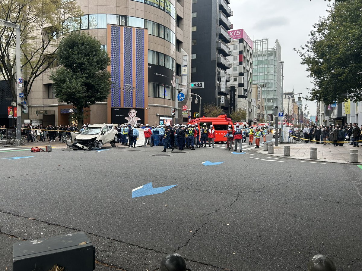 【現場の状況】『車が暴走して複数の人が倒れている通報』#交通情報 久屋大通 北行き 名古屋市中区栄交差点付近 乗用車が歩道に乗り上げる人身事故で一時通行止め渋滞4月1日 #名古屋 #栄