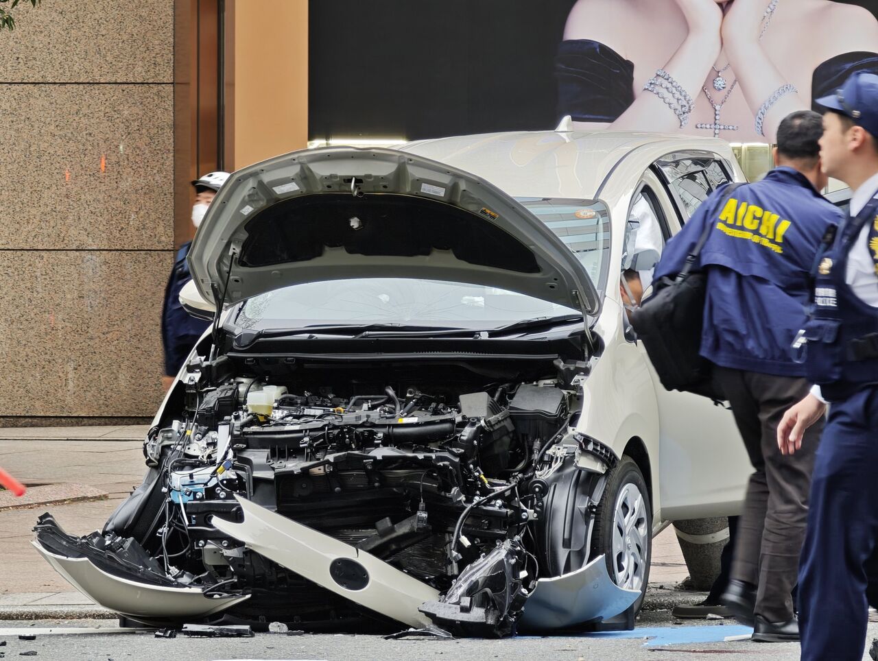 交差点上で人が2人倒れてて車が歩道に突っ込んでた— 源さん @UE名古屋🐸🦌🥫 (@Ubereat95384712) April 1, 2025