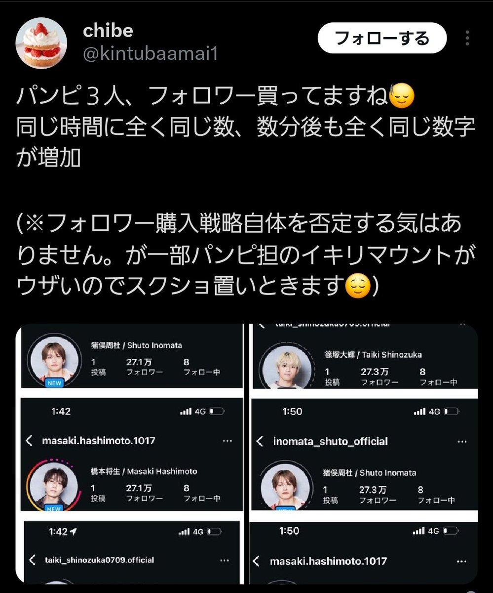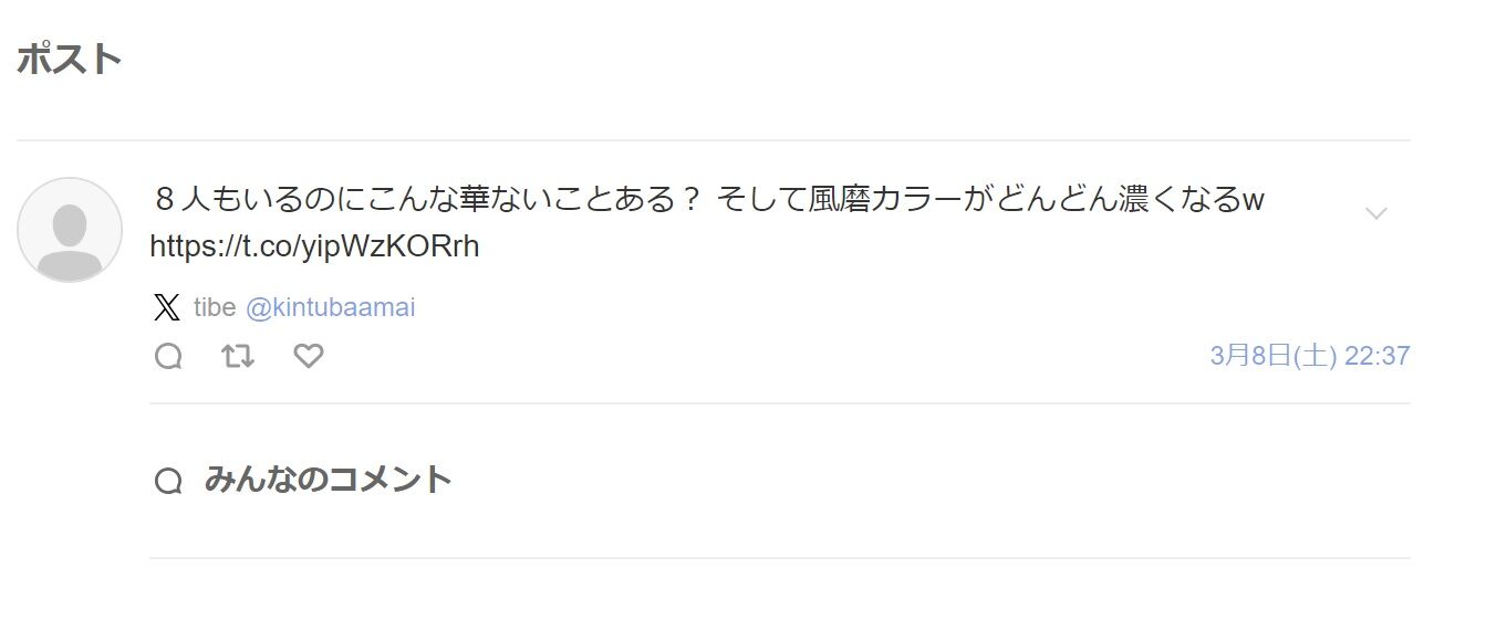 チベスナさん鍵かけちゃったけど、スクショ拡散されてかわいそうに。鍵かける前、自分は猫目担ではなくセクゾ担って言い訳してたけど、今となってはアンチだよね。自分がアンチ側に立つと見えてたものも見えなくなってしまい、かわいそう。 https://t.co/2b8hW3EdVO— 🍮 (@kinnopurinn) March 23, 2025