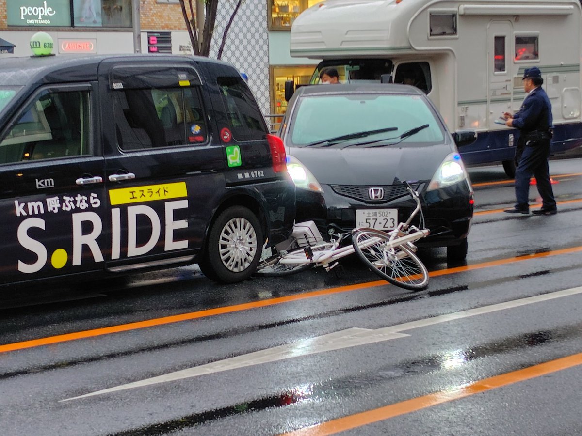 『表参道でお巡りさんの自転車が跳ねられてる』