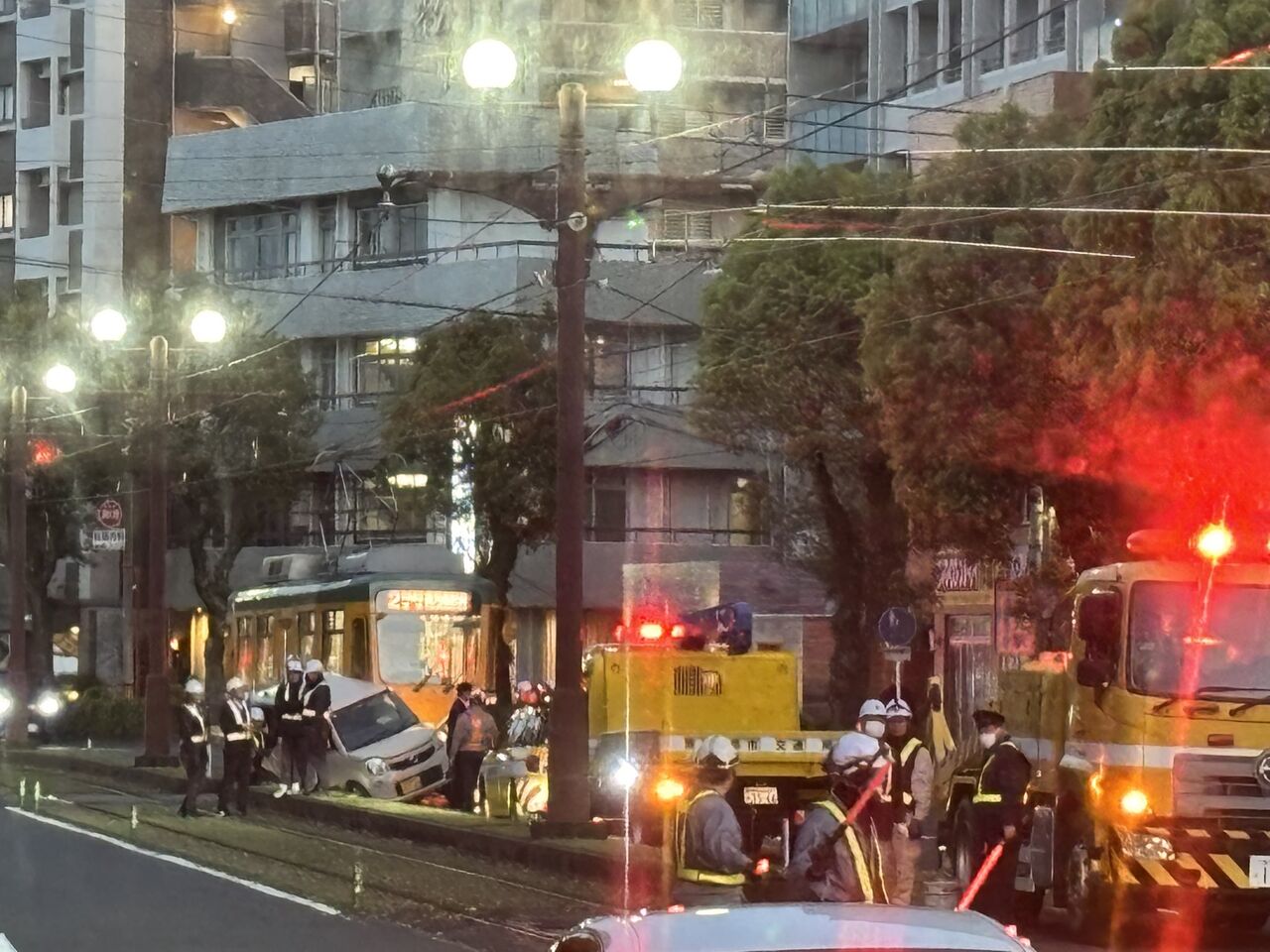 市電と軽自動車が衝突事故