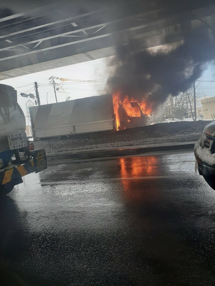 新川IC近くの新道でトラック炎上中 pic.twitter.com/FfsK7KxOys