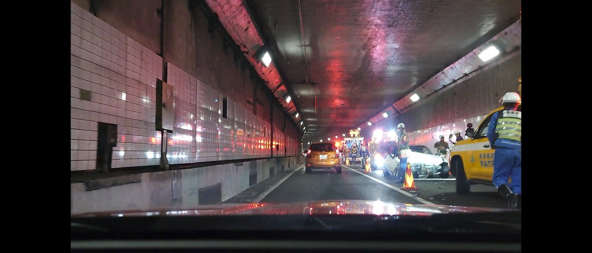 首都高外回り霞が関付近北の丸トンネル内でNDロードスターが単独で大破してた…自分も気をつけないと…