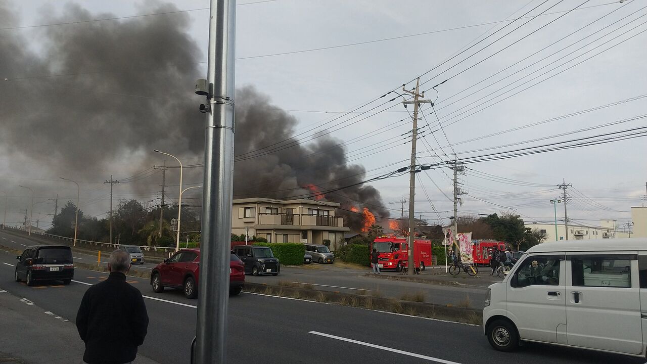 上柴東?の山田うどんの近くの民家?が火事で陸橋渡ったところが煙で凄かった‼️