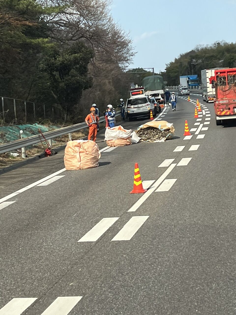 『産廃フレコン落下車線規制渋滞中渋滞距離は未測定』
