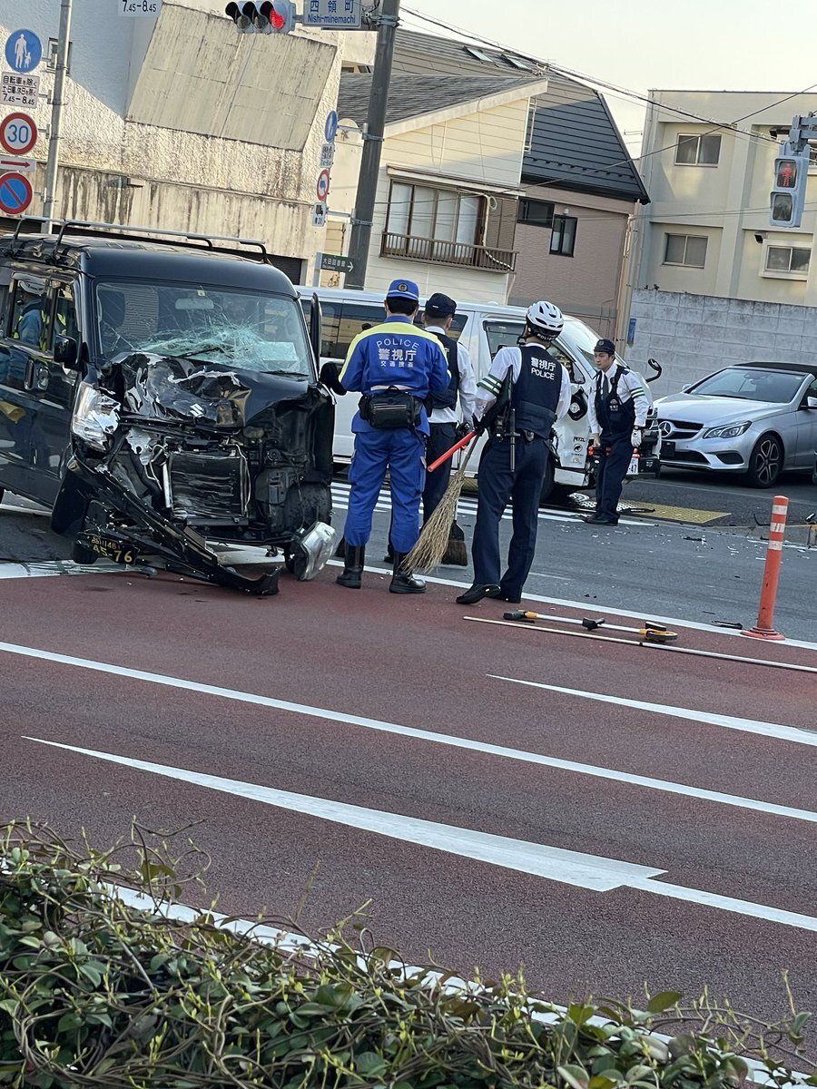 『ハイエースが歩道まで突っ込んでたけど歩行者巻き込んでないことを祈る🙏』