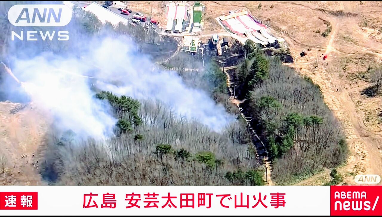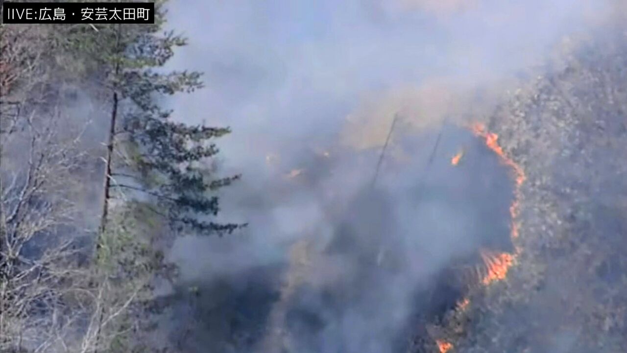 広島市消防局によると、午前10時55分ごろ、広島県安芸太田町松原で「野焼きの火が山に燃え移った」との119番があった。市消防局の消防車12台とヘリ1機が出動し、町消防団とともに消火活動に当たっている。町は午後0時40分、松原の11世帯17人に避難指示を出した。避難場所は松原高齢者コミュニティセンター。現場は町役場の北約7・5キロの山あい。