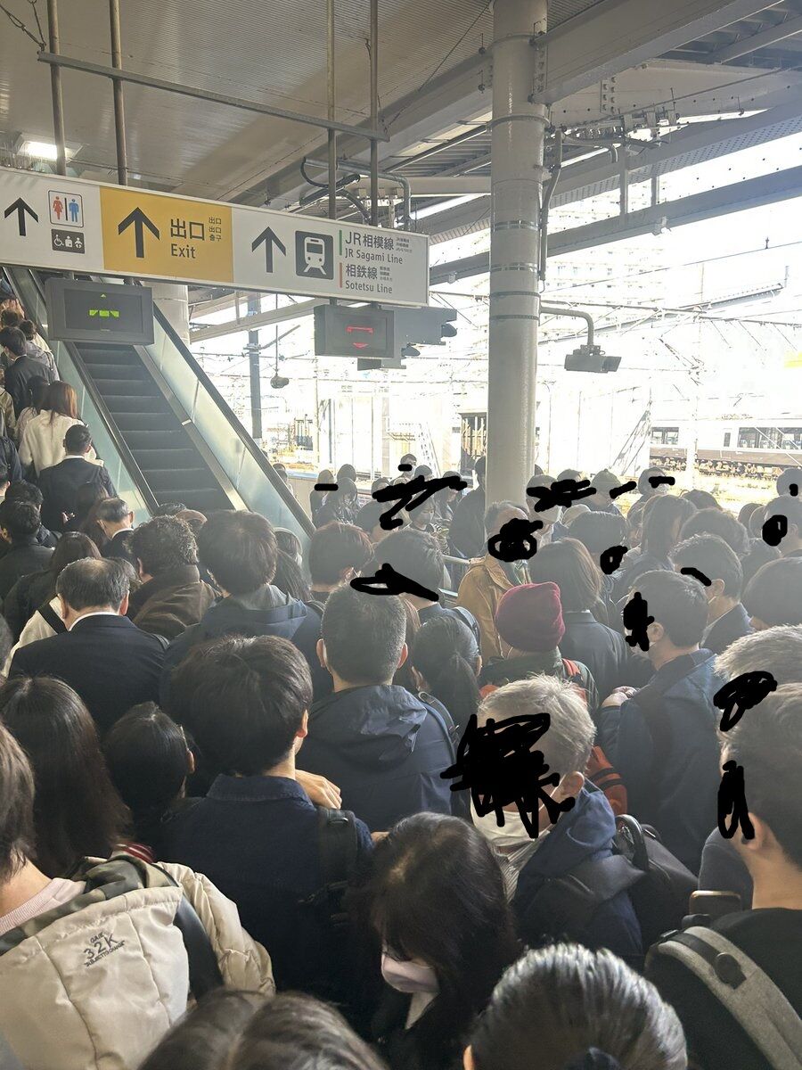『人身事故の影響で海老名駅の箱根そば大行列』