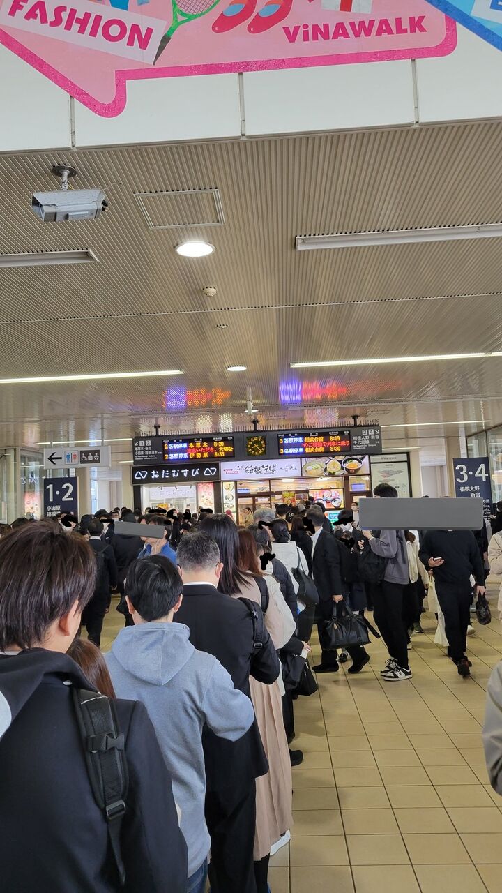 【現場の状況】『人身事故で海老名の箱根そばが大行列』#相鉄線 #相模線 海老名駅が大混雑 #小田急小田原線 の人身事故の影響 通勤通学ラッシュ混乱4月9日 #海老名
