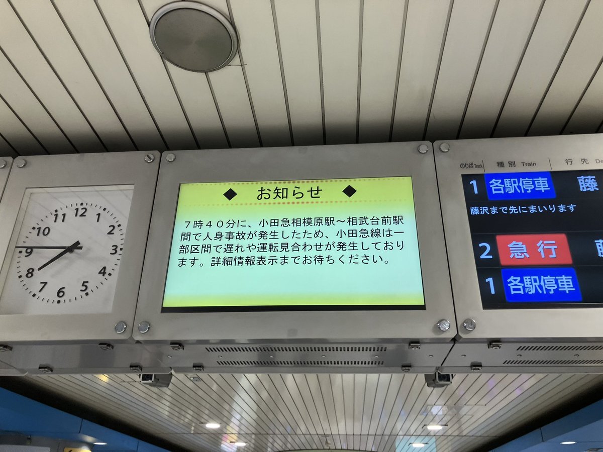 小田急相模原〜相武台前で人身事故とのことで。やはり、こう言った駅間での人身事故を防ぐためにも、駅間にもホームドアの整備をしましょう‼️‼️ https://t.co/cq9pSQr6uP
